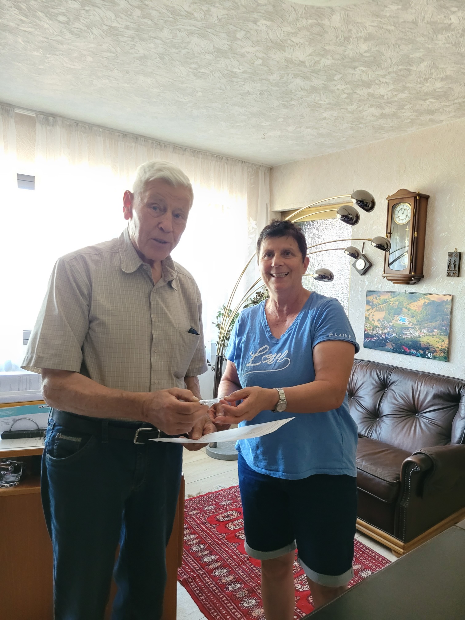OGV-Vorsitzende Ingrid Zitzmann bedankte sich persönlich ganz herzlich bei den Mitgliedern Günter Pitthan und Helmut Andres für 50 Jahre Vereinstreue sowie bei Liselotte Stork für 25 Jahre Zugehörigkeit in deren eigenem Zuhause. Die Freude war groß, da die Geehrten nicht damit gerechnet hatten.