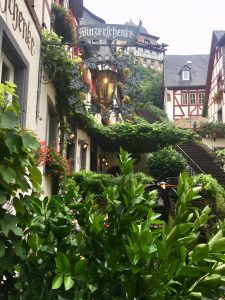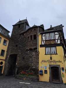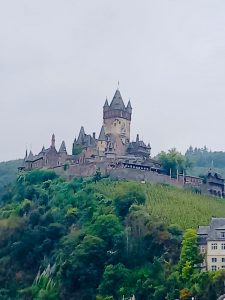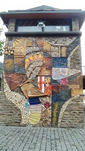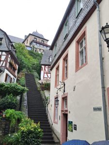 Die Fahrt führte teilweise über die Hundsrückhöhenstraße, vorbei am Flughafen Hahn, dem Ort Kappel sowie der Stadt Zell an der Mosel mit ihrem überregional bekannten Riesling „Zeller Schwarze Katz“, bis hin zur kleinen Siedlung Beilstein, auch „Dornröschen der Mosel“ genannt. Über dem Ort thront die mächtige Burgruine Metternich. Der gut erhaltene Ortskern diente vielen alten Filmen als ideale Kulisse. Der Reiseleiter führte die Gruppe kurz zur steilen Klostertreppe und zum historischen Marktplatz. Für eine weitere Besichtigung der Winkel und Gassen blieb leider nur wenig Zeit, da in Ellenz-Poltersdorf das Restaurant „Vergissmeinnicht“ die Reisegesellschaft bereits mit einem köstlichen Mittagessen erwartete. Gut gestärkt ging es weiter zur kleinsten Kreisstadt Deutschlands. Cochem liegt direkt am windungsreichsten Flussabschnitt, dem sogenannten „Cochemer Krampen“. Das Wahrzeichen der Stadt, die erhabene Reichsburg auf einem weithin sichtbaren Bergkegel, hatte es den Besuchern besonders angetan. Zu den Sehenswürdigkeiten gehören u.a. ein einzigartiges Mosaik mit dem Stammbaum der Stadt, das Rathaus im Barockstil, der zum Verweilen einladende Marktplatz sowie der Martinsbrunnen. Durch den Turm der Martinskirche hindurch führt der Weg in die Altstadt mit ihren kleinen Geschäften und Weinstuben. Auch hier kann man über alte winkelige Steintreppen einen Klosterberg erklimmen. Durch das einst kleinste Stadttor, dem Fuchsloch, gelangt man direkt zur Moselpromenade. Eine Hochwasseranzeige an der Hauswand des Café Alt Cochem zeugt von enormen Überschwemmungen.