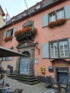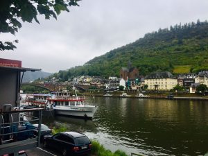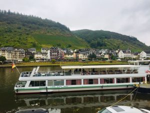 Reiseleiter Hermann aus Simmern, der Stadt aus der einst dem „Schinderhannes“ die Flucht gelang, vermittelte auf eine recht lockere Art so manch Wissenswertes: Die Mosel entspringt in den Vogesen und mündet als zweitlängster Nebenfluss bei Koblenz in den Mittelrhein. Bis dahin sind insgesamt 28 Schleusen zu bewältigen. Zwischen Bremm und Ediger-Eller befindet sich der imposante Höhenzug Calmont, der mit seinen Hangneigungen zur steilsten Weinlage Europas zählt. Das als Mahnmal errichtete Gipfelkreuz bietet neben dem Aussichtsplateau einen besonderen Blick auf die Moselschleife. Des Weiteren sind das Moselland Museum in Ernst sowie die „Mosel-Loreley“ mit dem einzigen Weinberg Europas, der nur mit einem Boot zu erreichen ist, von größerer Bedeutung. Zwischendrin erzählte Hermann eine amüsante Anekdote über den Ort Alf, der Ende der 1980iger Jahre aufgrund der gleichnamigen Fernsehserie des Öfteren Probleme mit seinem Ortsschild bekam.