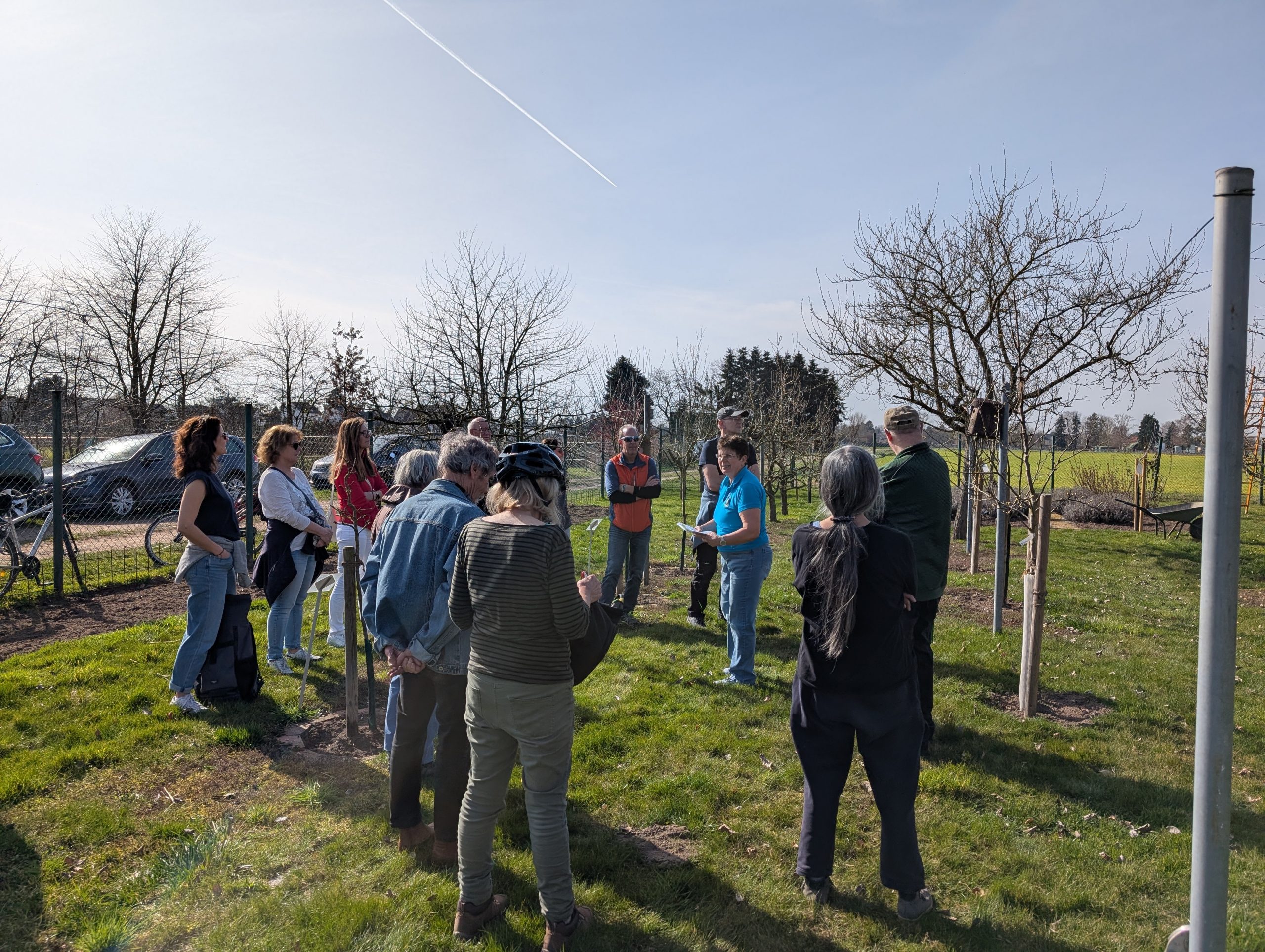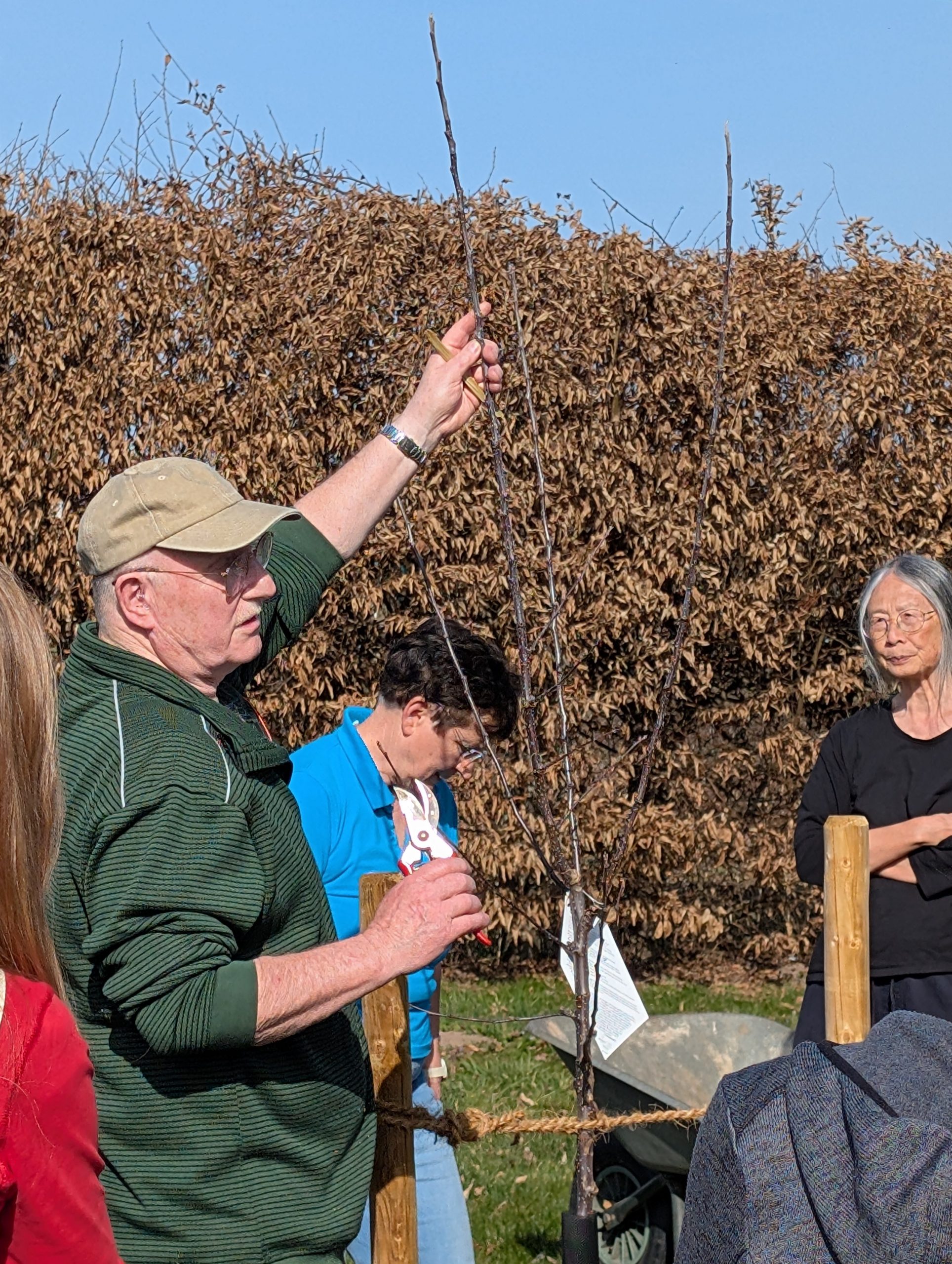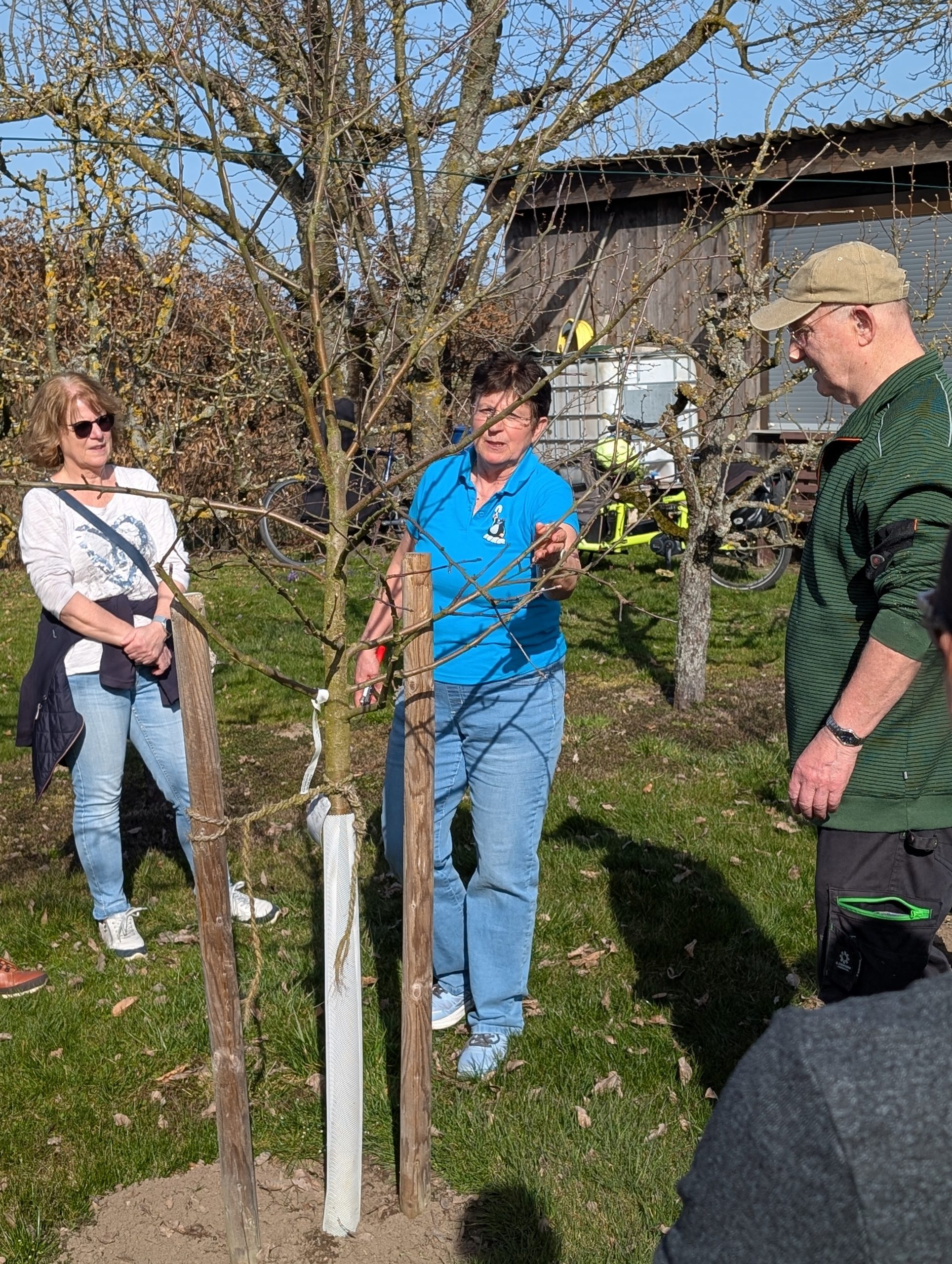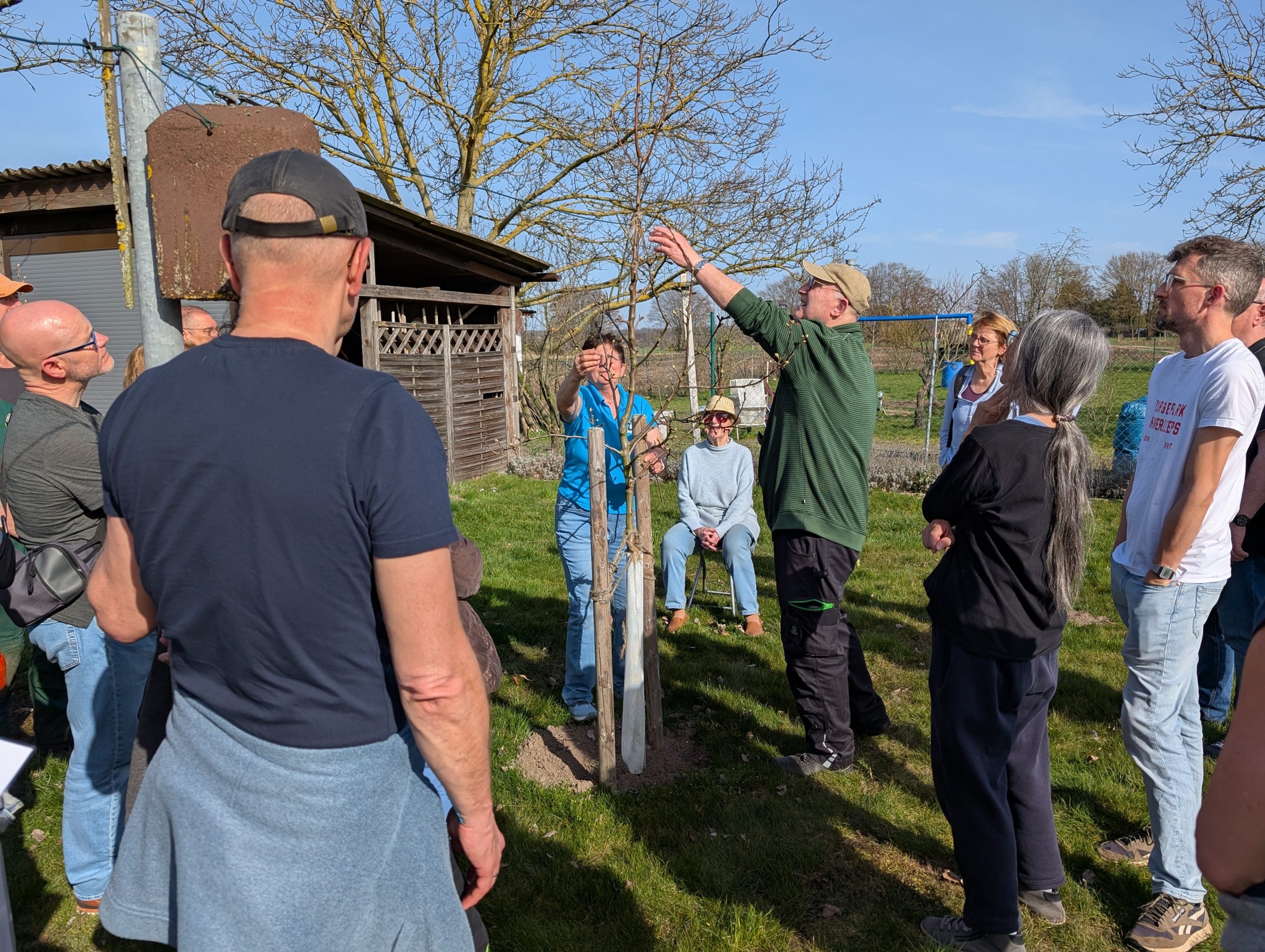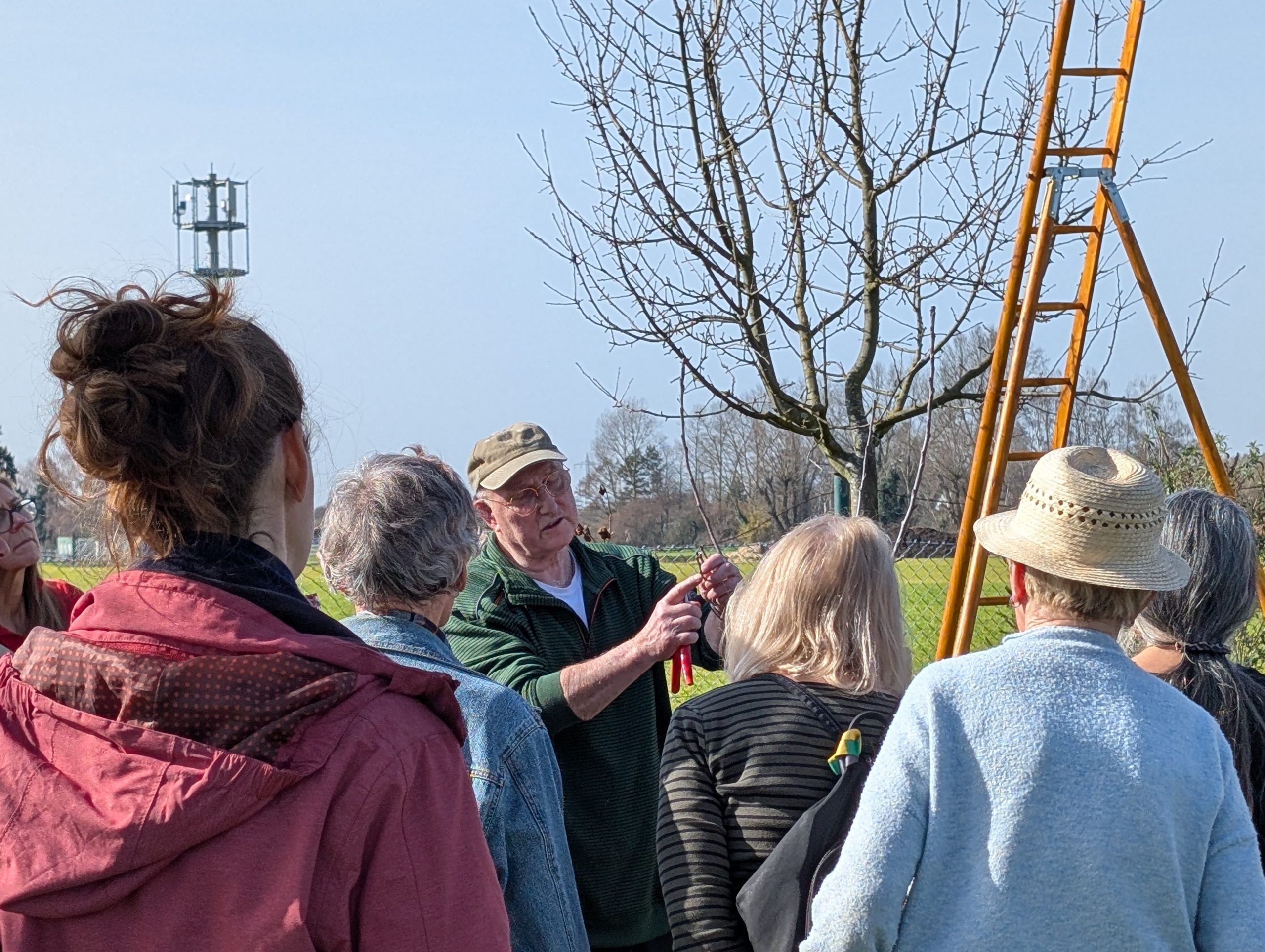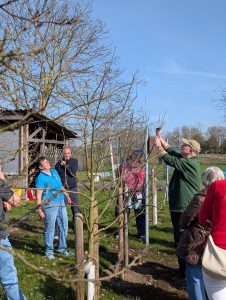 (uh) Bei herrlichem Frühlingswetter konnten Ingrid Zitzmann und Wolfgang Bender, Fachwarte des Obst- und Gartenbauverein Arheilgen, einen Schnittlehrgang für Jedermann abhalten. Dafür hatten sich bei recht angenehmen Temperaturen viele Gartenfreunde im Vereinslehrgarten eingefunden. Zunächst hörten sich die Anwesenden die allgemeinen Ausführungen zum Winterschnitt und dessen Auswirkungen an. Anschließend wurde das Theoretische durch die Rückschnitte der sogenannten Konkurrenztriebe an den verschiedenen Obstgehölzen anschaulich in die Praxis umgesetzt. Denn das Hauptziel des Obstbaumschnitts ist, unter Berücksichtigung der drei wichtigsten Lebensphasen, die Langlebigkeit und ein guter Ertrag. Aufkommende Fragen konnten direkt beantwortet werden. Zum besseren Verständnis wurde durchaus auch mal die eine oder andere Präsentationsunterlage gezeigt.